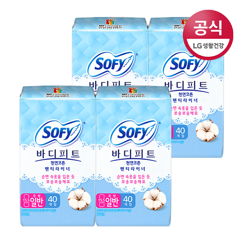쏘피 바디피트 생리대 천연코튼 일반팬티라이너(무향)40p x 4팩