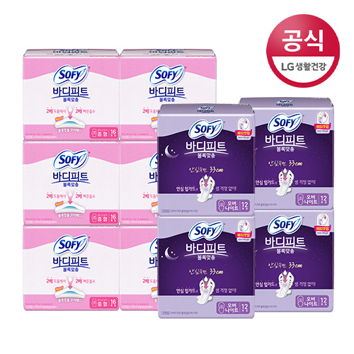 쏘피 바디피트 생리대 볼록맞춤 중형16p x 6팩 + 볼록맞춤 오버나이트12p x 4팩