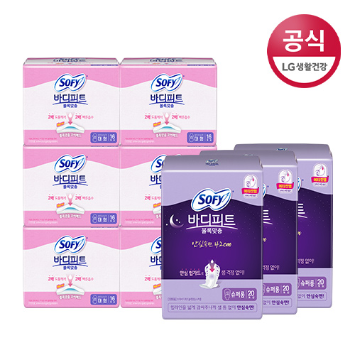 쏘피 바디피트 생리대 볼록맞춤 대형16p x 6팩 + 볼록맞춤 슈퍼롱20p x 3팩