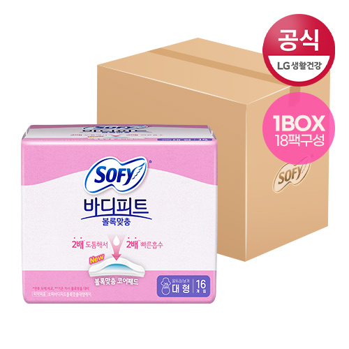 쏘피 바디피트 생리대 볼록맞춤 대형16p x 18팩(1BOX)